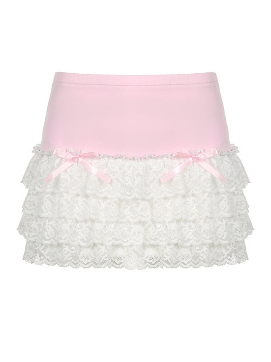 Pink Lace Layered Skirt