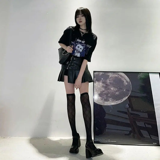 Jupe ceintures Punk Cool noir blanc ON828