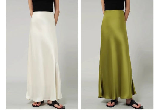 Midi High Satin Slit Skirt Pencil Plain Rise