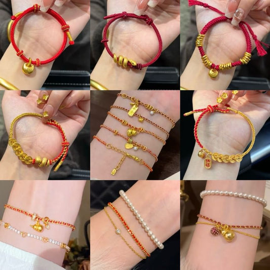 / Designs) Faux Tassel Wooden Set Gemstone Bead Bracelet (Various