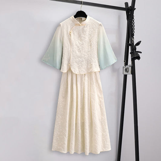 Hanfu Jacquard Buckle Shirt Pleated Skirt