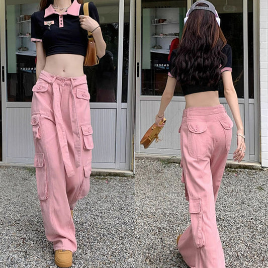 Vintage Love Heart Crop T-Shirt Pink Cargo Pants