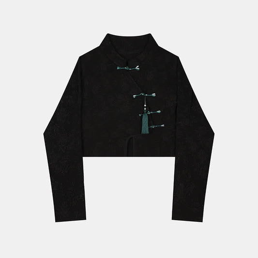 Vintage Black Tassel Shirt High Waist Lace Up Pleated Skirt