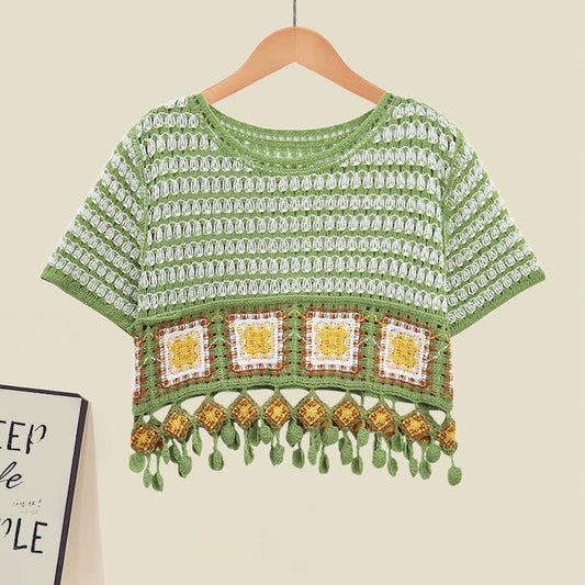 Boho Green Fringed T-Shirt Drawstring Split Slip Dress