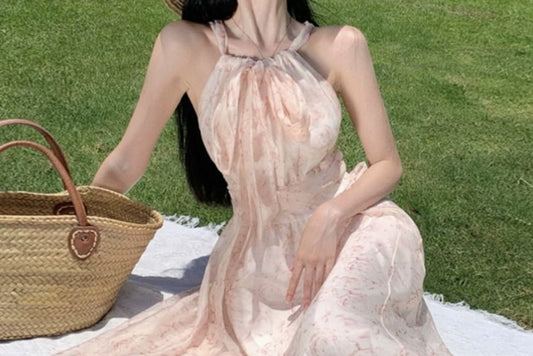 Halter-Neck Floral Print Mini A-Line Dress / Cape / Set