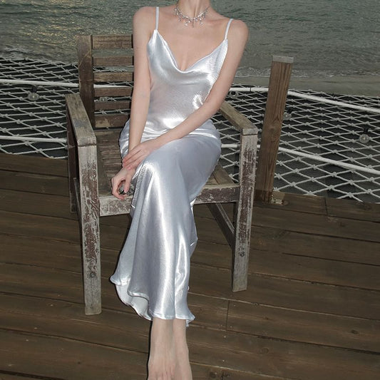 Spaghetti Strap Midi Satin Bodycon Dress