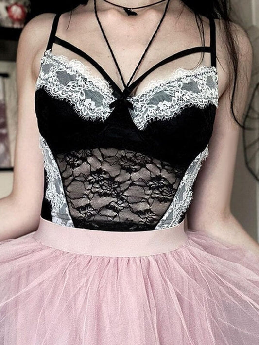 Delilah Lace Trimmed Fake Two-piece Camisole