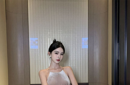 Halter Neck Open Dress Tie Smocked Maxi Back Dye A-Line