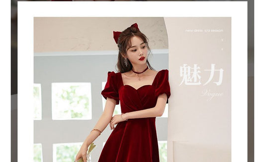 A-Line Gown Cocktail Dress Evening Puff-Sleeve /