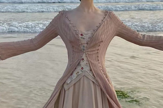 Traditional Chinese Light Jacket / Spaghetti Strap Seer Dress / Set