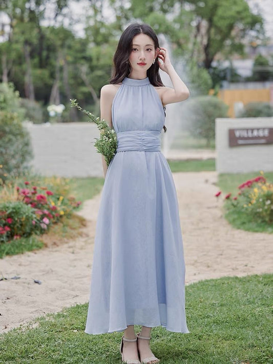 Halter Plain Maxi Sundress / Belt / Cardigan / Set