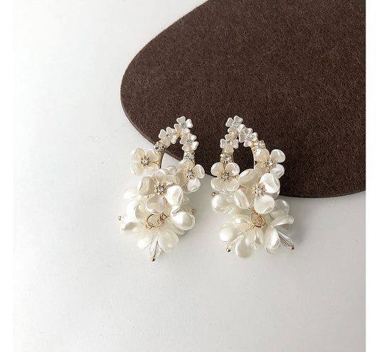 Faux Floral Fringed Alloy Earring Pearl