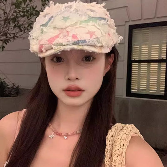 Distressed Embroidery Bucket Brim With Hat Butterfly