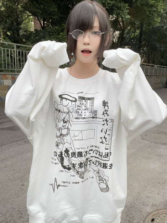 Jirai Kei White Round Neck Graphic Sweatshirt Yami Kawaii Top