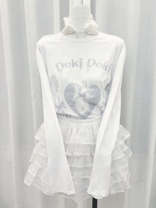 Yami Kawaii Black Heart Print Graphic T-shirt