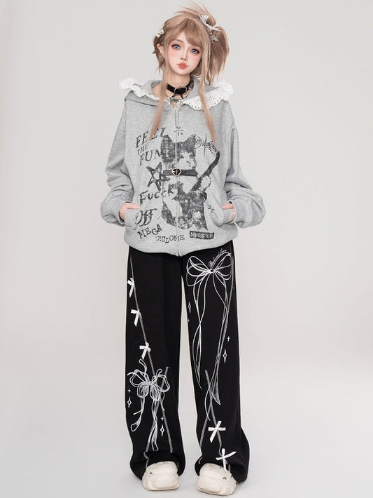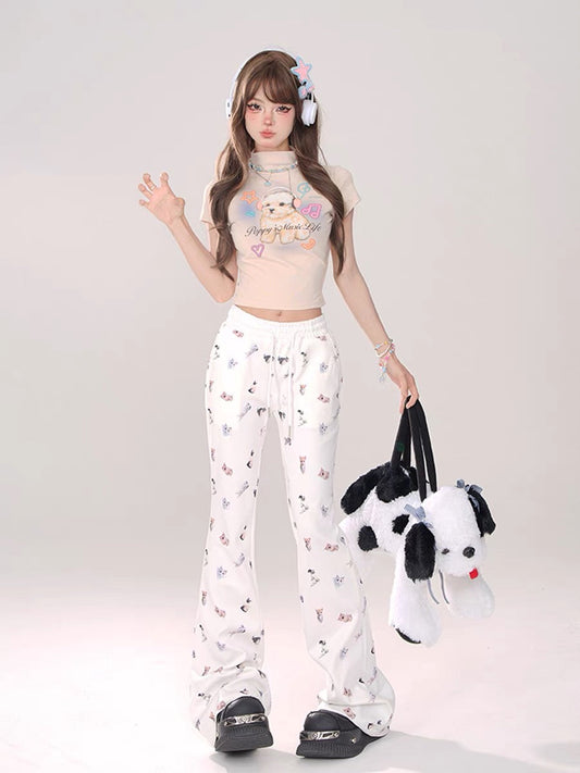 Ribbon Bow Print Straight-leg Cut Sweatpants