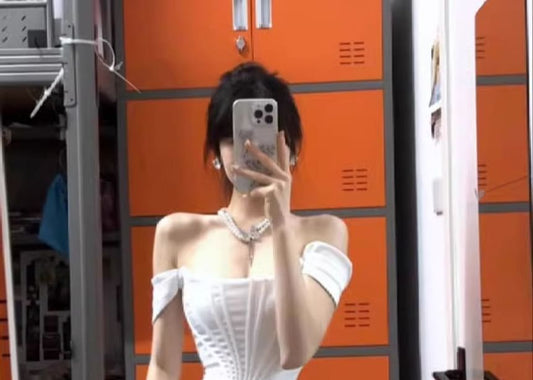 Sleeveless Off-Shoulder Plain Asymmetrical Slit Corset Sheath Cocktail Dress