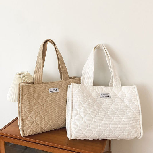 Quilted Corduroy Tote Bag