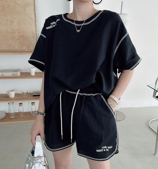 Set: Elbow-Sleeve Crewneck Plain T-Shirt + Shorts