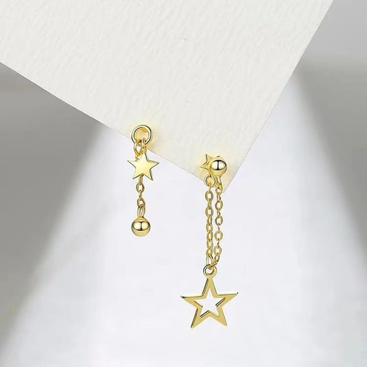 925 Sterling Silver Rhinestone Cross Asymmetrical Drop Earring