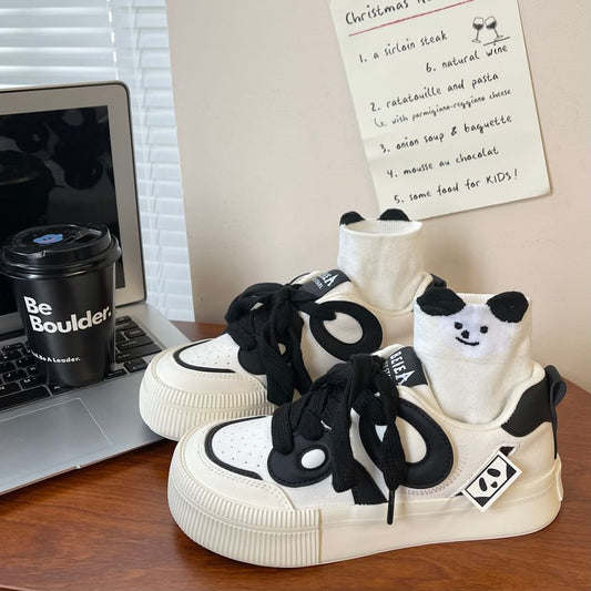 Plaid Panel High Waist Drawstring Wide Leg Pants