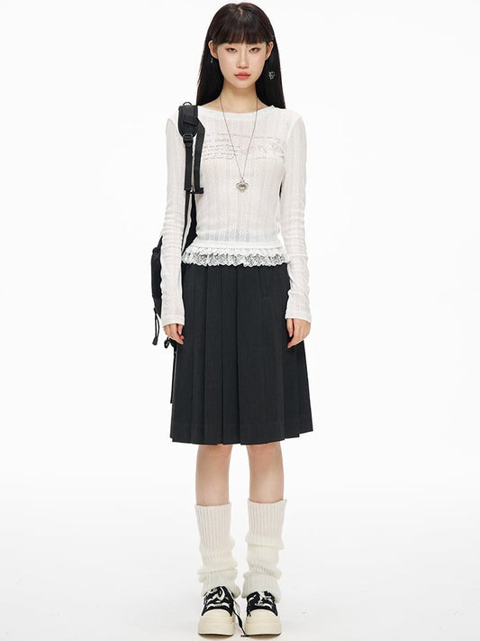 Elastic Waist Plain Sheer Midi A-Line Skirt