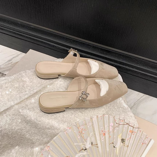Mules Toe Heel Chunky Rhinestone Square