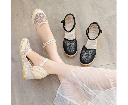 Flower Sandals Wedge Embroidered