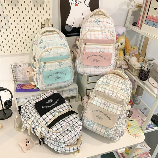 Print Bag Charm Multi-Pocket Backpack Set Cartoon /