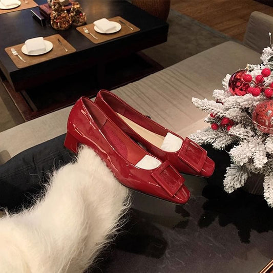 Jane Round Leather Faux Plain Flats Mary Buckled Toe