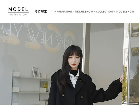 Long Sleeve Round Neck Button Up Wool Blend Jacket