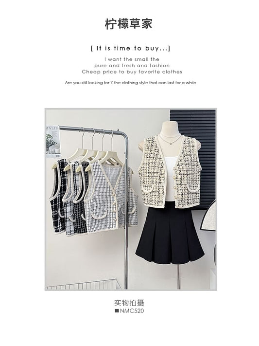 Set: Square-Neck Tweed Jacket + Sleeveless Crop Shirt