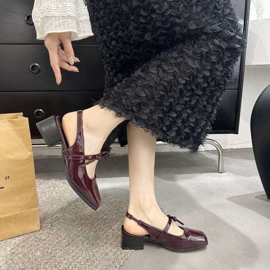 Tweed Toe Sequin Heel Mary Square Block Jane Pumps