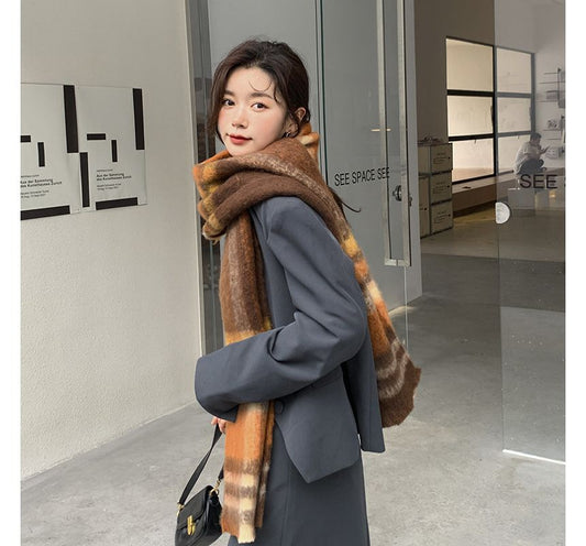 Set: Crew Neck Two Tone Jacquard Oversized Sweater + Beanie