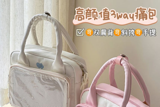 Heart Embroidered PVC Panel Crossbody Bag / Bag Charm / Set