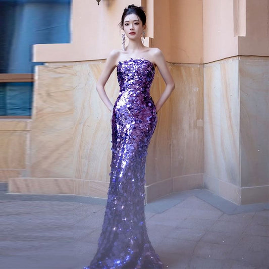 Strapless Plain Sequin Mermaid Evening Gown