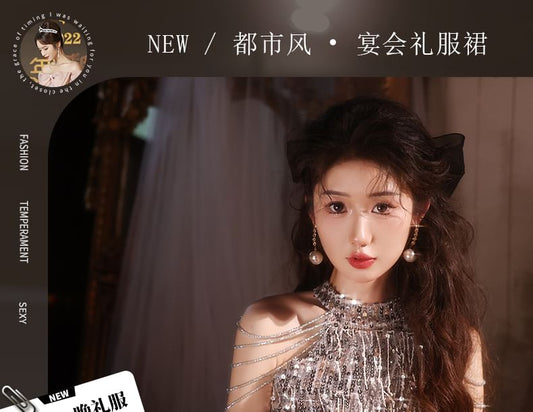 Halter Fringed Sequin Sheath Cocktail Dress