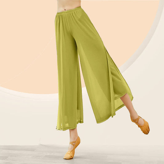 Vintage Pure Color Mesh Flowy Split Casual Pants