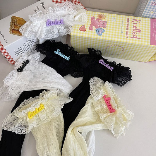 Lettering Pendant Floral Lace Socks