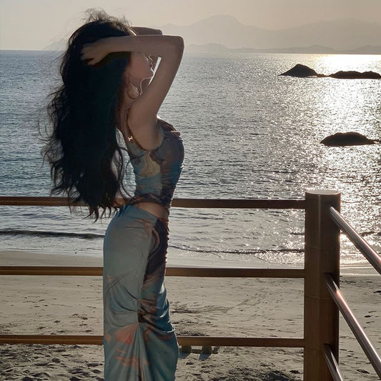 Set: Tie Dye Cami Top + High Rise Maxi Pencil Skirt
