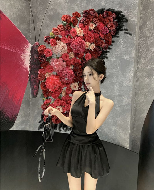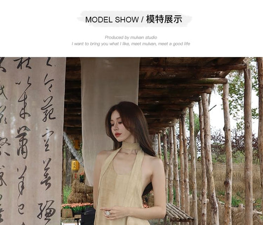 Halter Tie Dye Asymmetrical Open Back Midi A