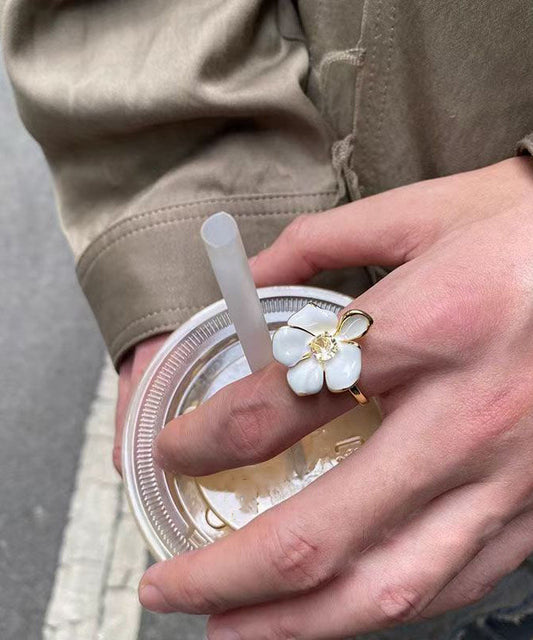 Zircon Copper White Acrylic Elegant Overgild Floral Rings Open