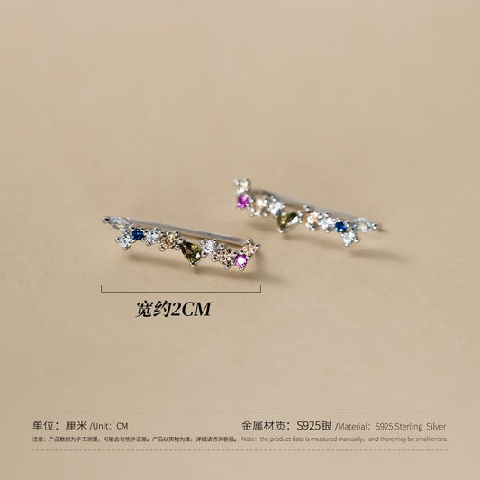 S925 Sterling Silver Heart Rhinestone Huggie Earring