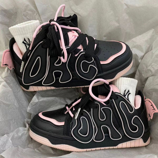 Baskets Coeur Rose Noir Chaussures Lovercore - Kimi