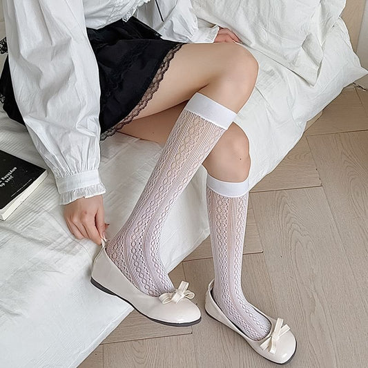 Bow Cutout Mesh Knee High Socks