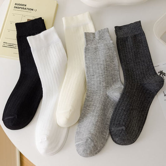 Plain Ribbed Crew Socks