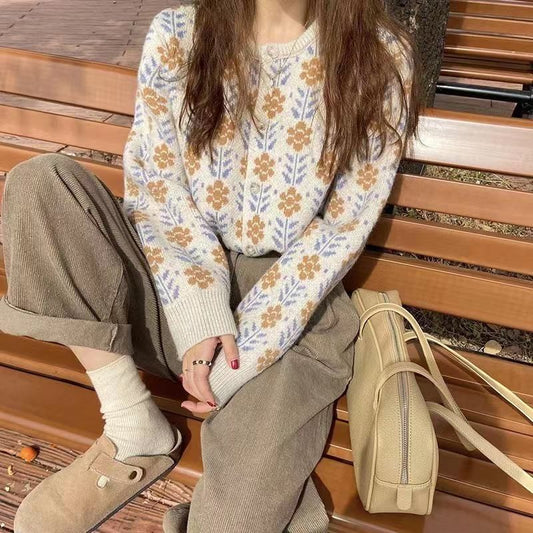Pearl-Trim Square-Neck Loose Sweater in 5 Colors