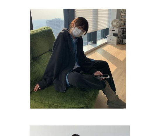 Hoodie Long-Sleeve Plain Dress Knit Midi