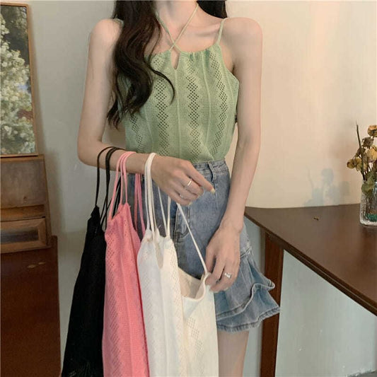 Cross Back Neck Criss Top Tank Crop Plain Tie Crew