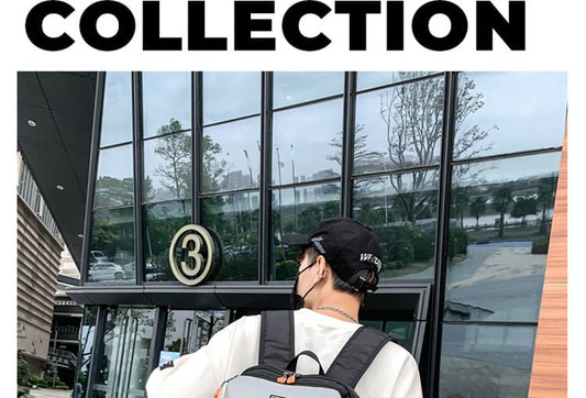 Two Tone Lettering Print Nylon Tote Bag / Laptop Backpack / Bag Charm / Set